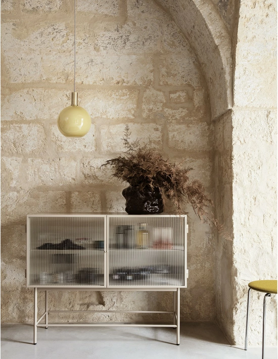 Haze Sideboard, Aparador de estructura metálica y cuerpo de cristal de estética industrial de Ferm Living
