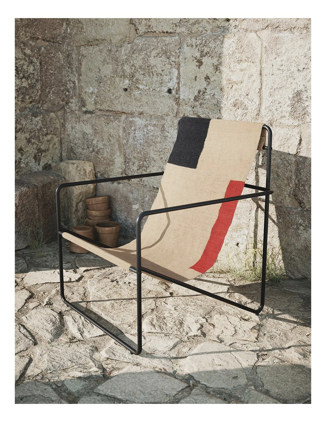 Desert Lounge Chair de Ferm Living es una butaca arquitectónica apta para interior y exterior con diferentes diseños. Escoge tu combinación.