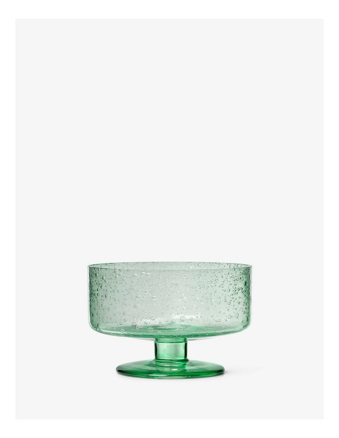 Cada pieza se realiza en vidrio reciclado con un acabado de burbujas diminutas que se crea mediante bolsas de aire entre las diferentes capas del vidrio.
