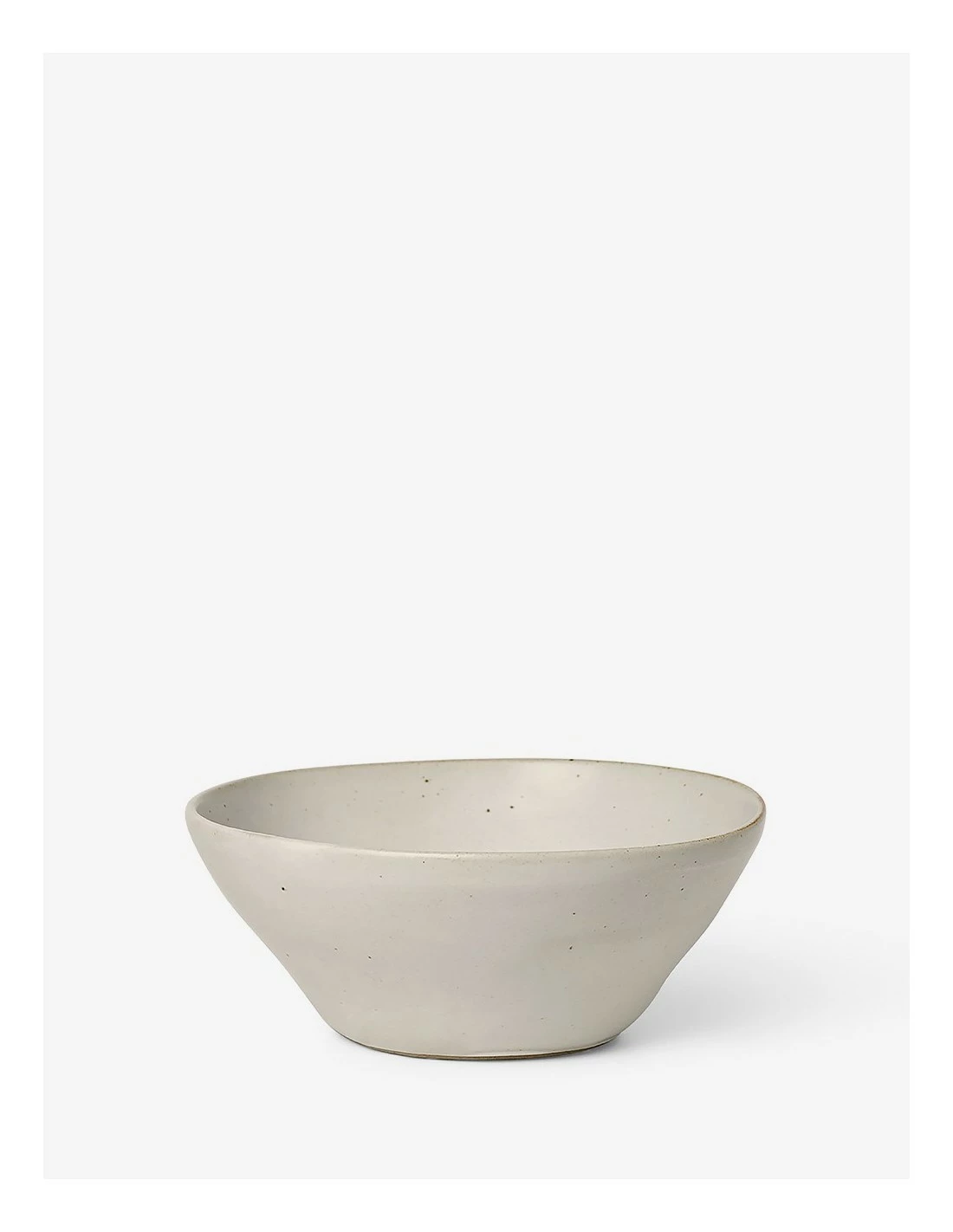 Vajilla de porcelana de la marca Ferm Living con diseño irregular.