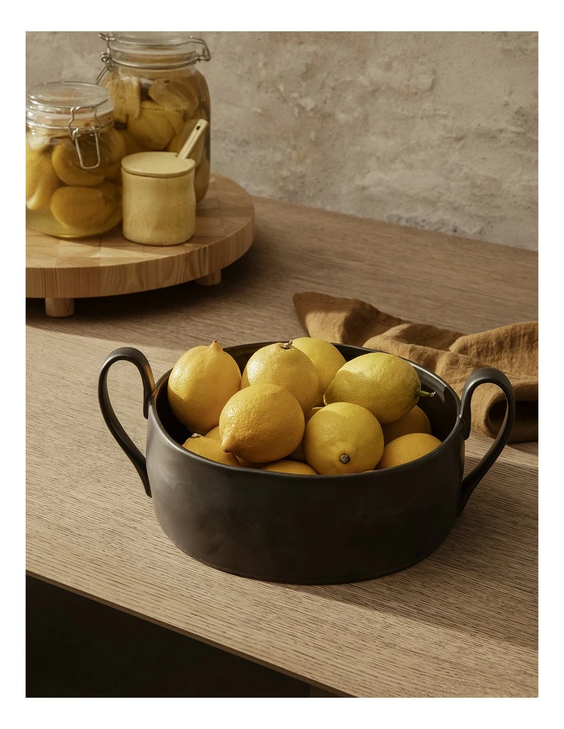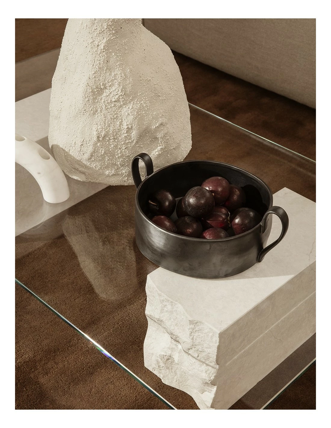 Vajilla de porcelana de la marca Ferm Living con diseño irregular.