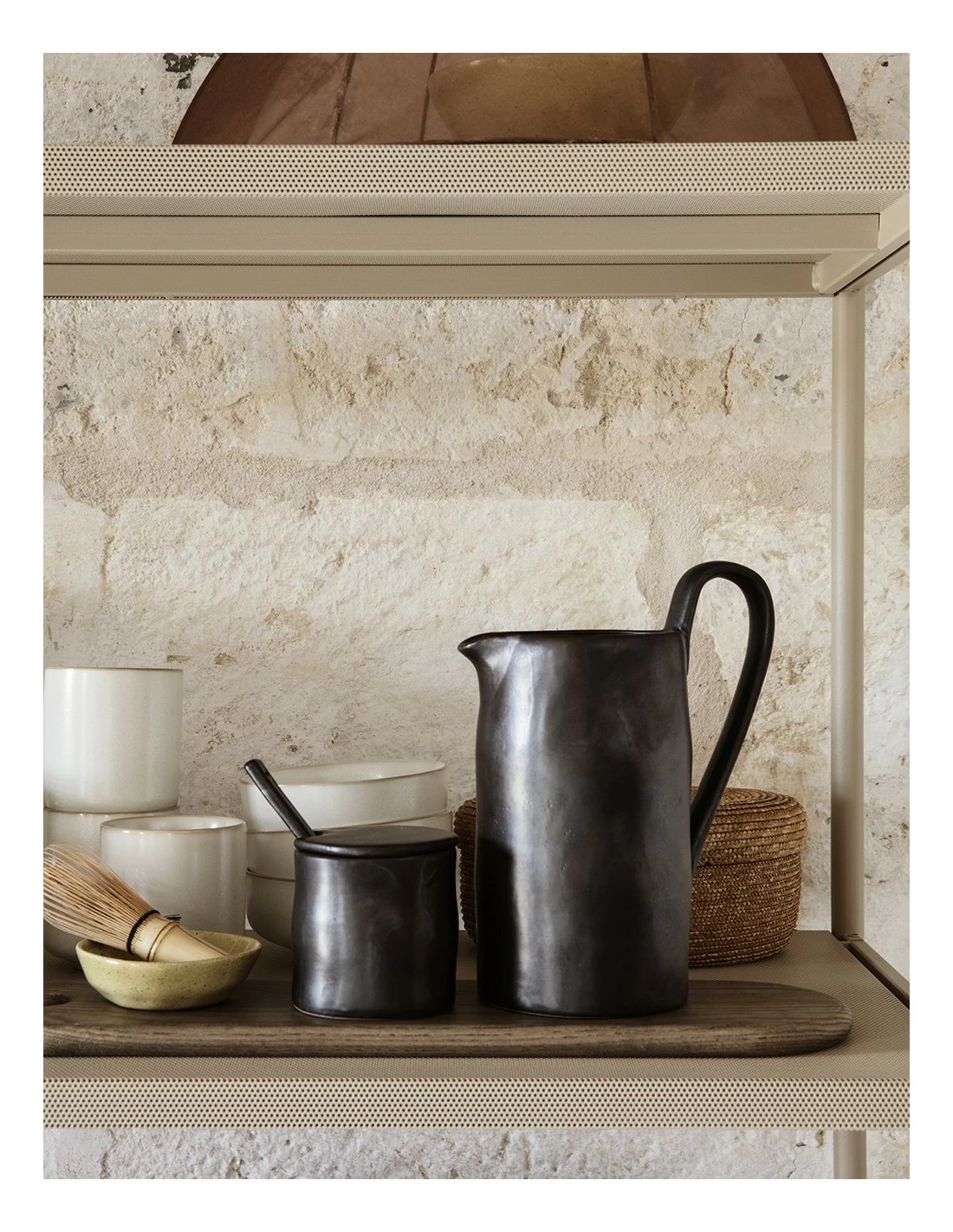 Vajilla de porcelana de la marca Ferm Living con diseño irregular.