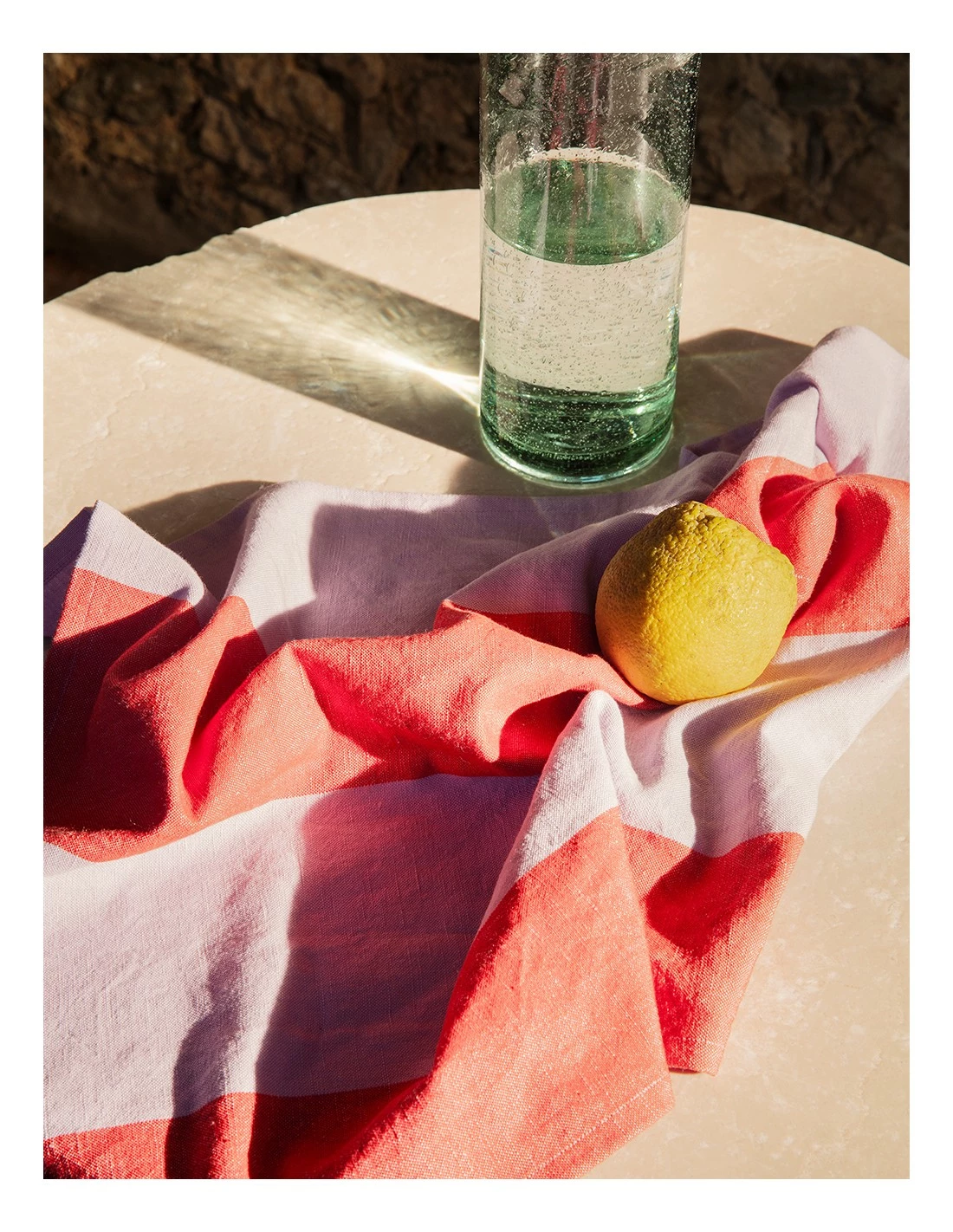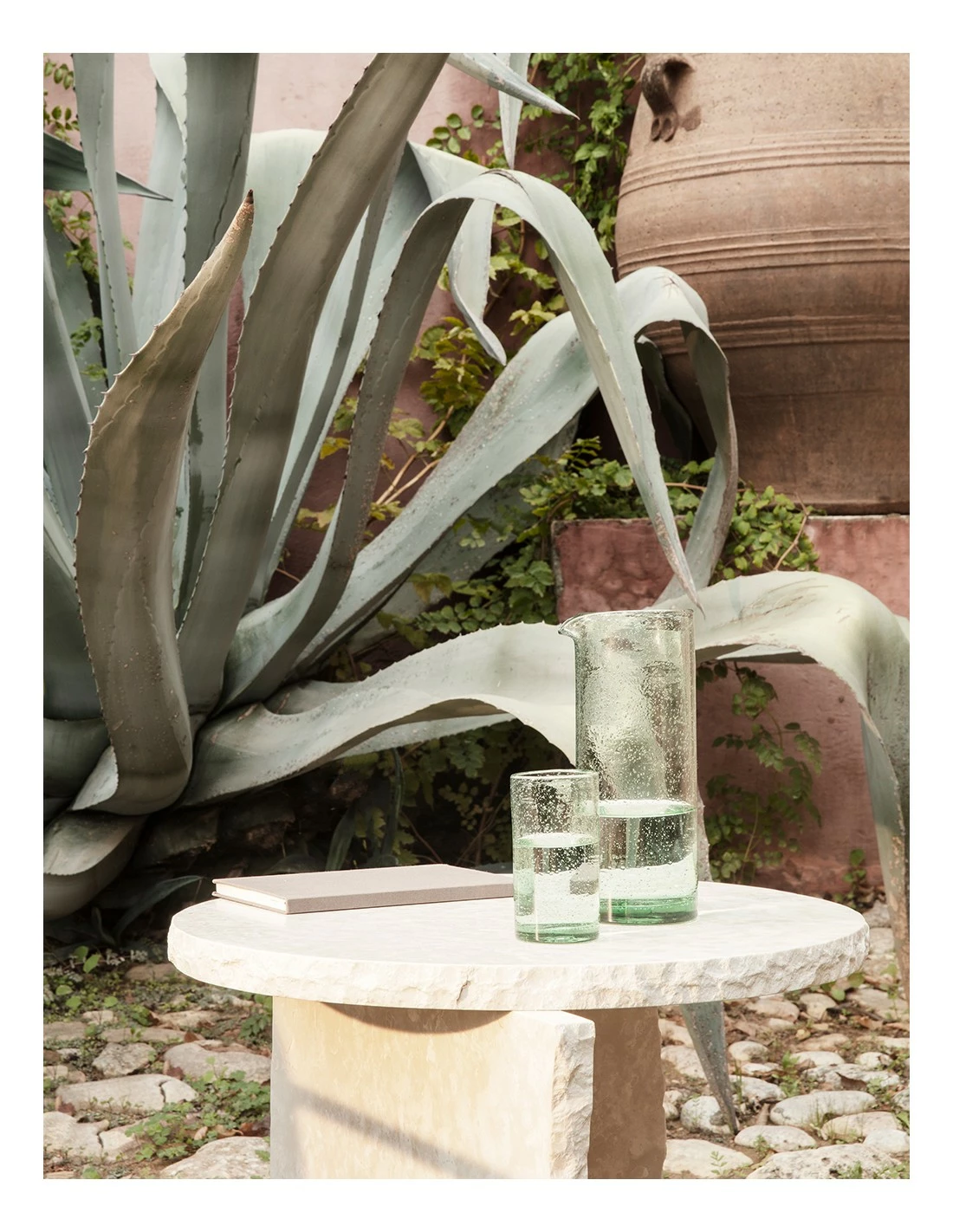 Cada pieza se realiza en vidrio reciclado con un acabado de burbujas diminutas que se crea mediante bolsas de aire entre las diferentes capas del vidrio.