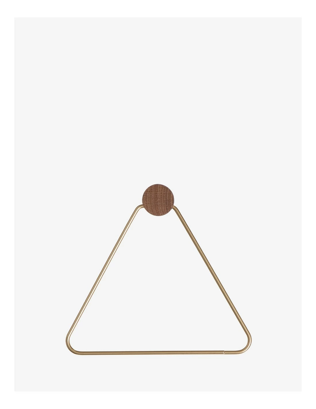 El diseño esta formado por un triángulo montado en un colgador circular de madera. El triángulo está abierto por un lado, lo que permite cambiar fácilmente los rollos.