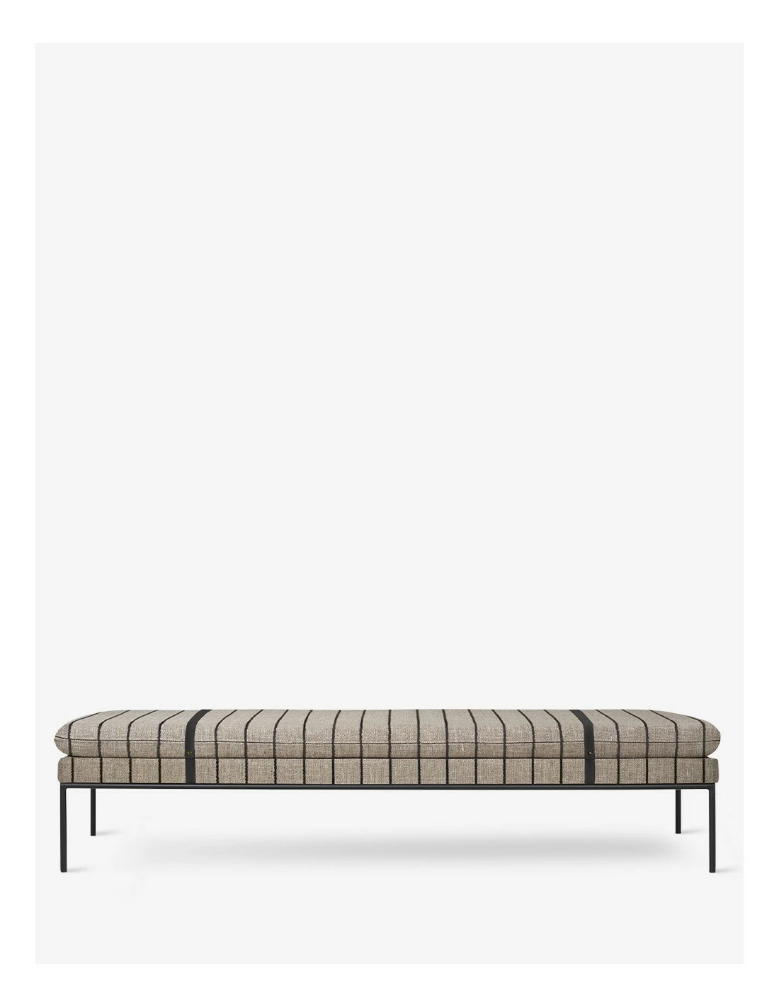 Diván de estilo minimalista y de aspecto ligero de Ferm Living tapizado con dos correas de piel. Turn Daybed está diseñada para proporcionar máxima comodidad y es apta para contract.