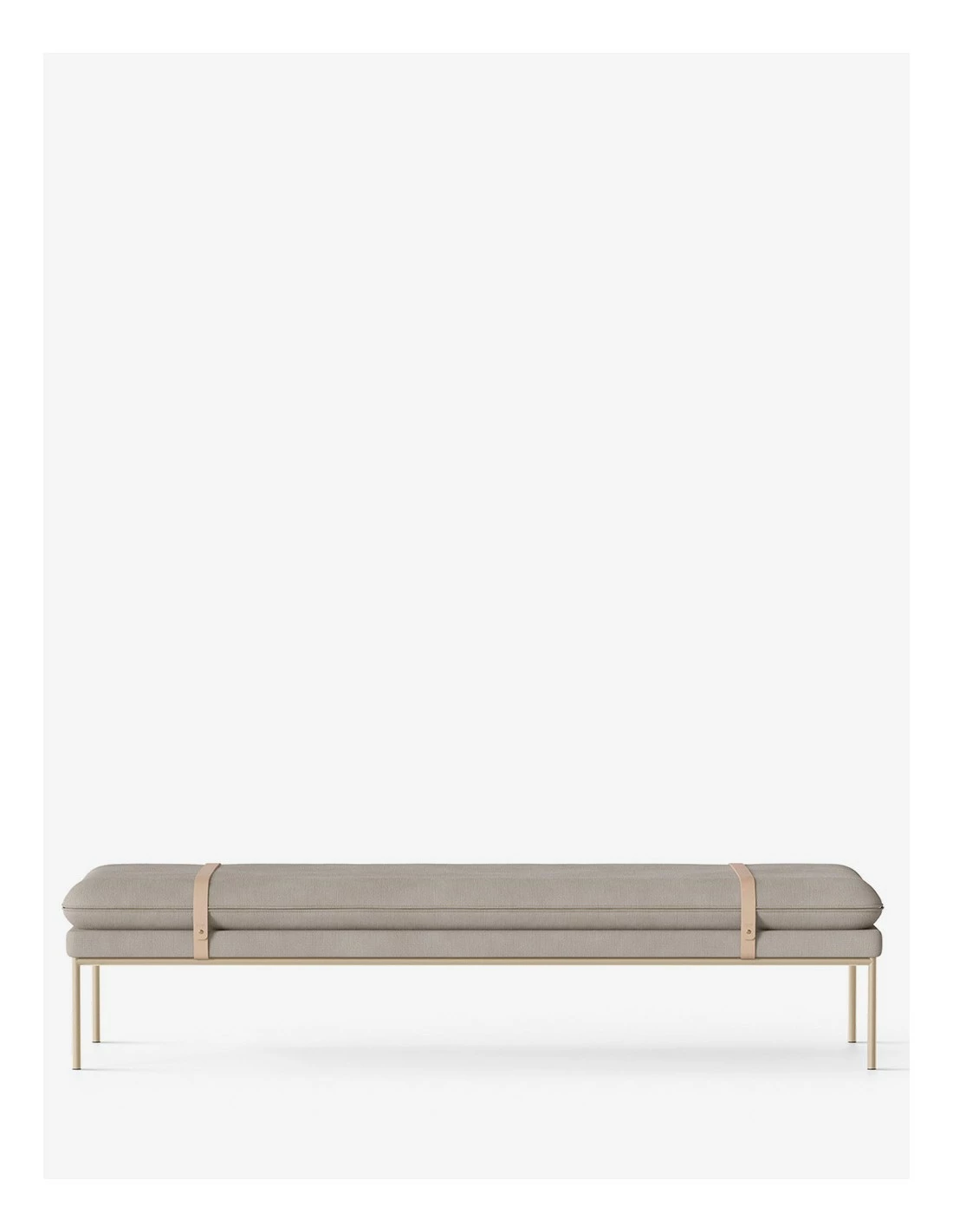 Diván de estilo minimalista y de aspecto ligero de Ferm Living tapizado con dos correas de piel. Turn Daybed está diseñada para proporcionar máxima comodidad y es apta para contract.