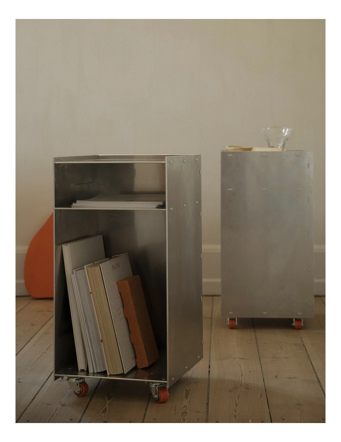 Rivet, diseñado por Jonas Trampedach para FRAMA, está compuesto por una serie de muebles de almacenamiento, y auxiliares, realizados en aluminio no tratado.