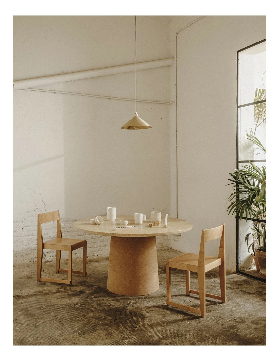 Sintra, de Nicholai Wiig Hansen para FRAMA, juega con dos materiales opuestos dando como resultado una mesa elegante de carácter orgánico.