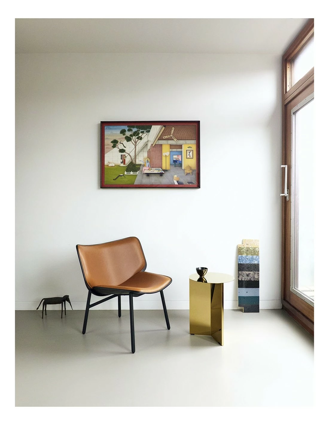 Minimalista y de líneas rectas esta mesa de acero lacado toma su inspiración en la técnica origami.