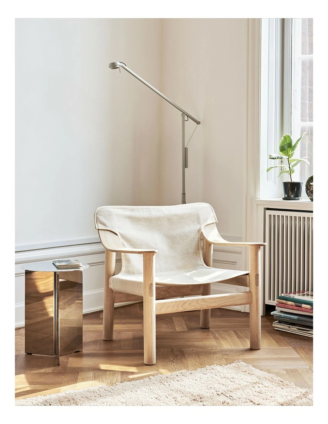Minimalista y de líneas rectas esta mesa de acero lacado toma su inspiración en la técnica origami.