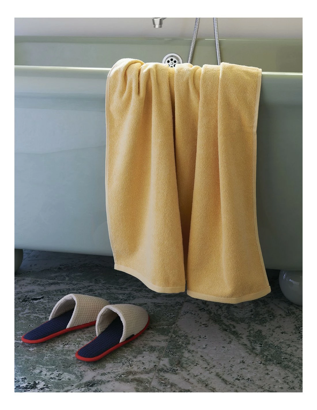 Confeccionada en algodón OEKO-TEX con una textura frotté, la serie Mono, es una gama de toallas de baño de diseño clásico y atemporal con el logotipo de HAY.