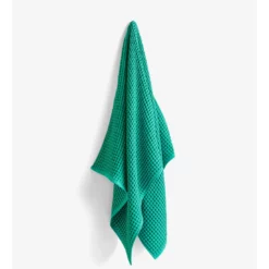 Confeccionada en algodón OEKO-TEX con una textura frotté, la serie Waffle, es una gama de toallas de baño de diseño clásico y atemporal con el logotipo de HAY.
