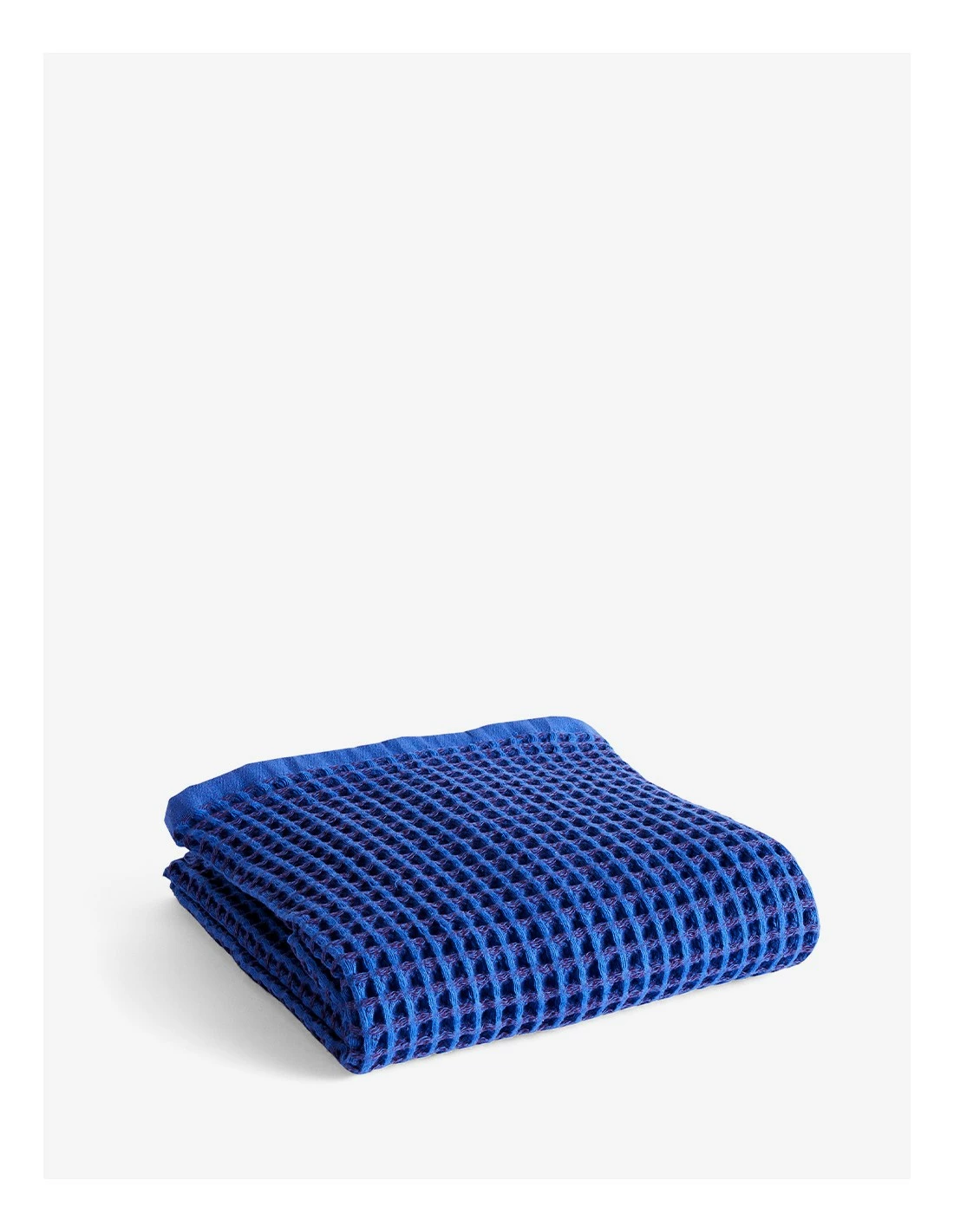 Confeccionada en algodón OEKO-TEX con una textura frotté, la serie Waffle, es una gama de toallas de baño de diseño clásico y atemporal con el logotipo de HAY.