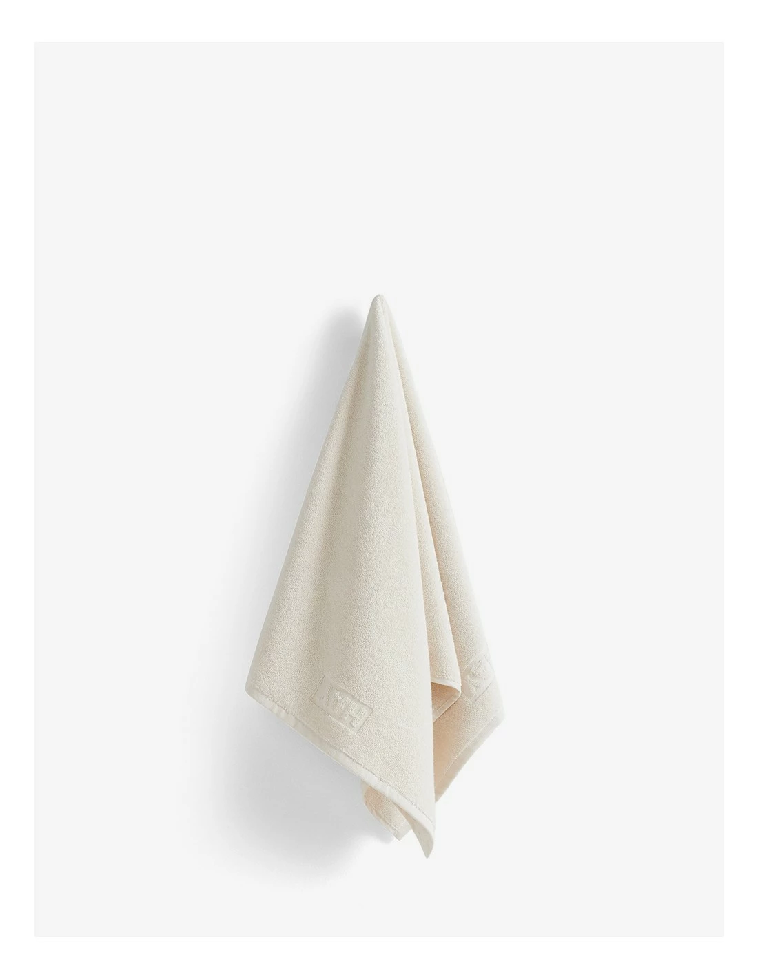 Confeccionada en algodón OEKO-TEX con una textura frotté, la serie Mono, es una gama de toallas de baño de diseño clásico y atemporal con el logotipo de HAY.