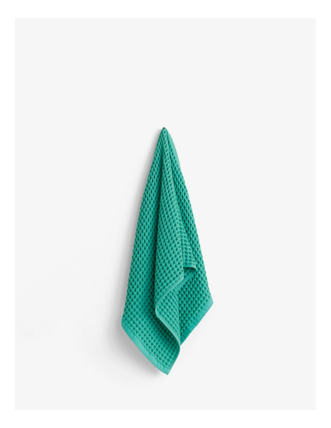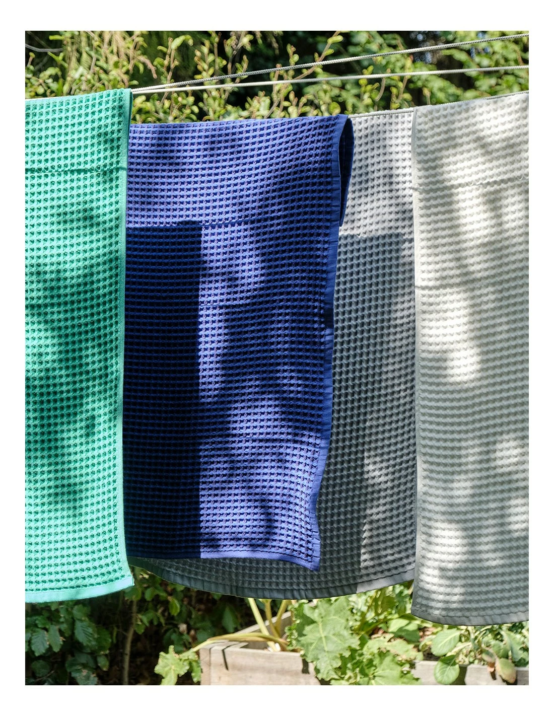 Confeccionada en algodón OEKO-TEX con una textura frotté, la serie Waffle, es una gama de toallas de baño de diseño clásico y atemporal con el logotipo de HAY.