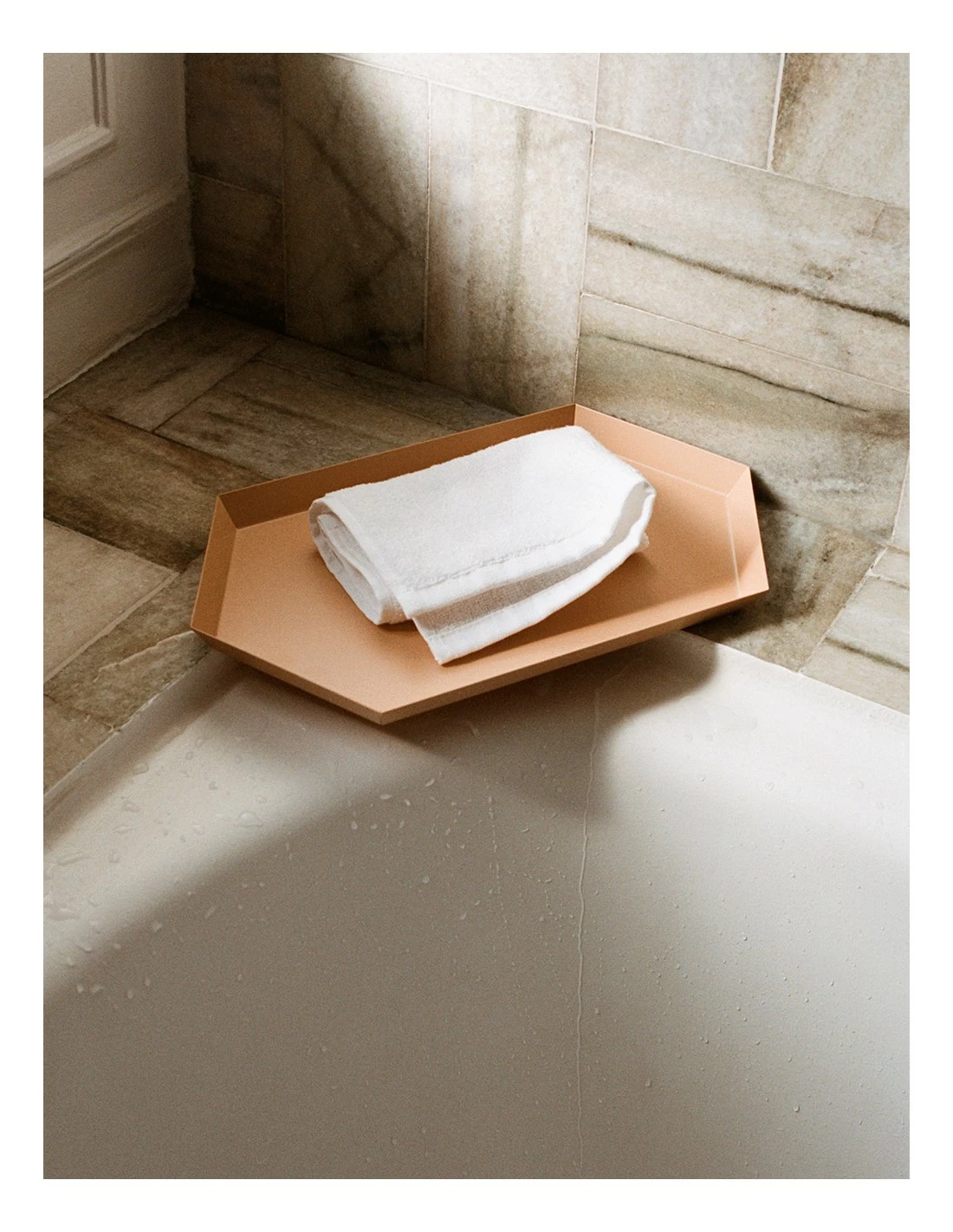 Confeccionada en algodón OEKO-TEX con una textura frotté, la serie Mono, es una gama de toallas de baño de diseño clásico y atemporal con el logotipo de HAY.