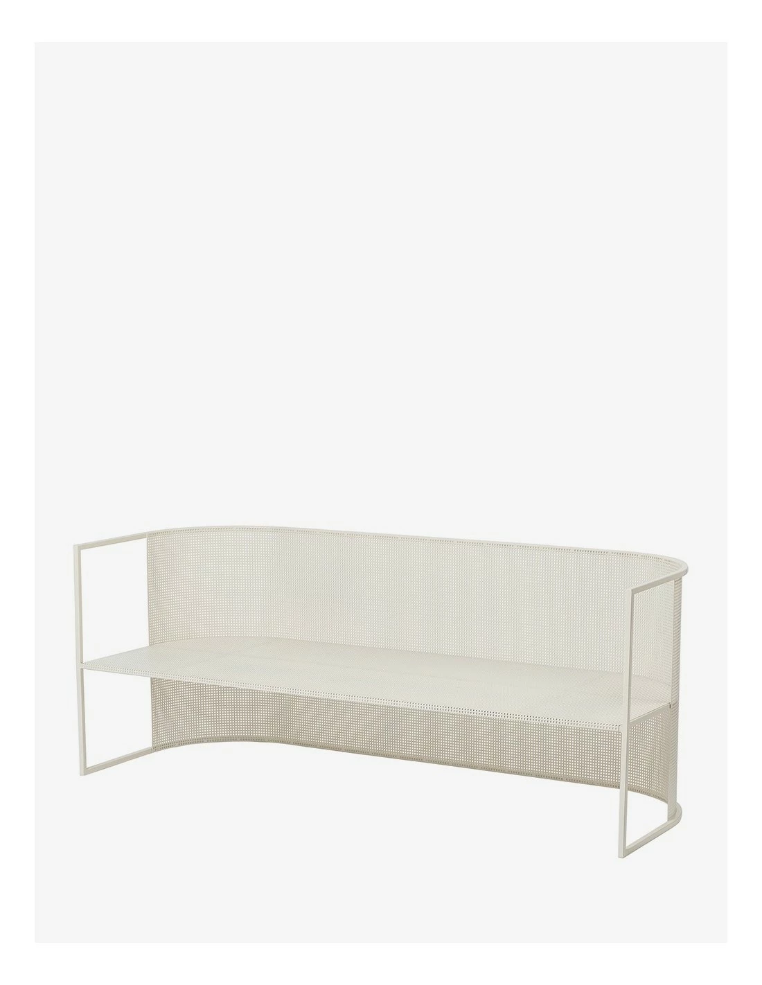 Banco de estilo minimalista realizada en acero perforado apta para su uso en exterior.