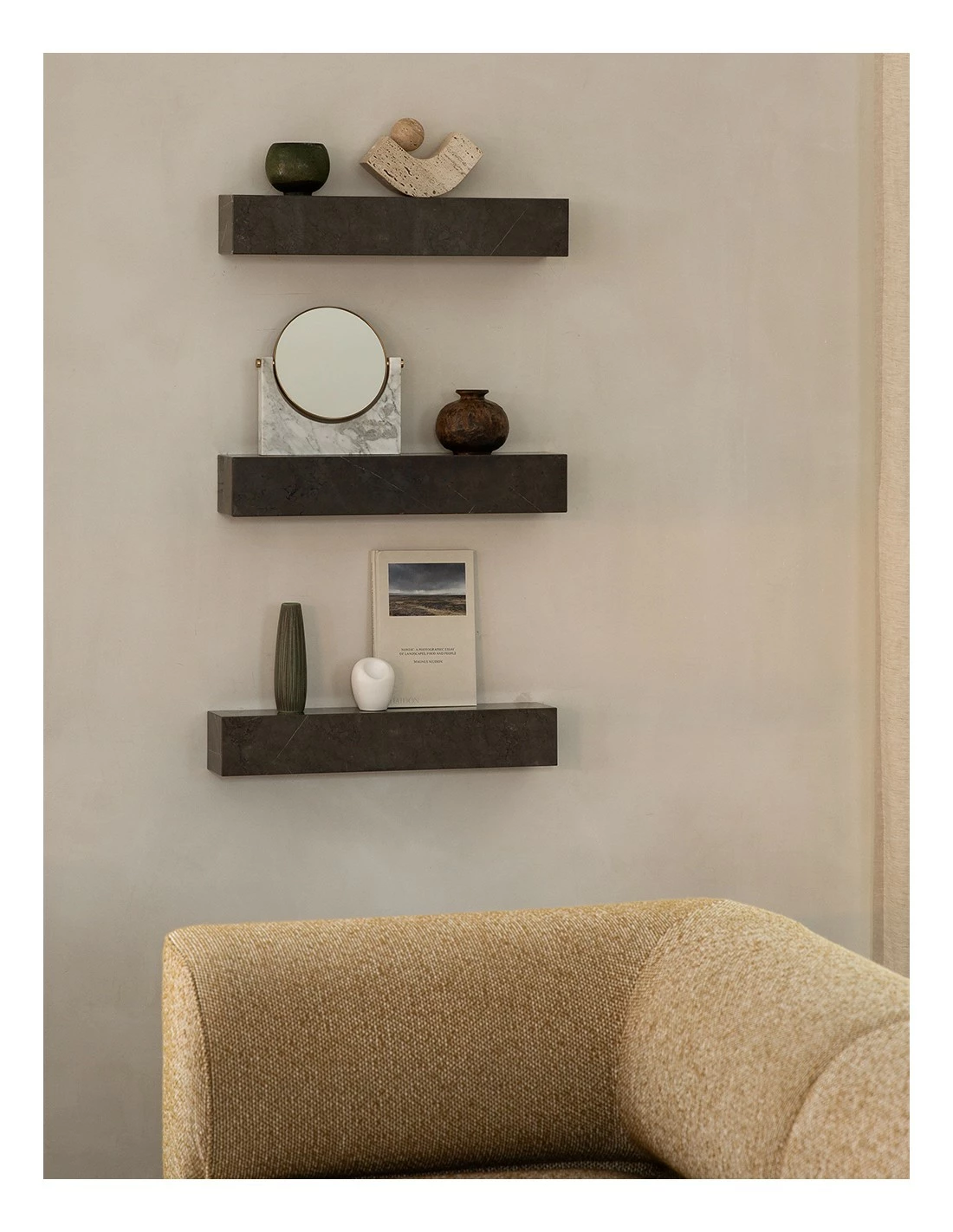 La colección Plinth, diseñada por Norm Architecs para MENU, está compuesta por una serie de podiums y estantes realizados en mármol.