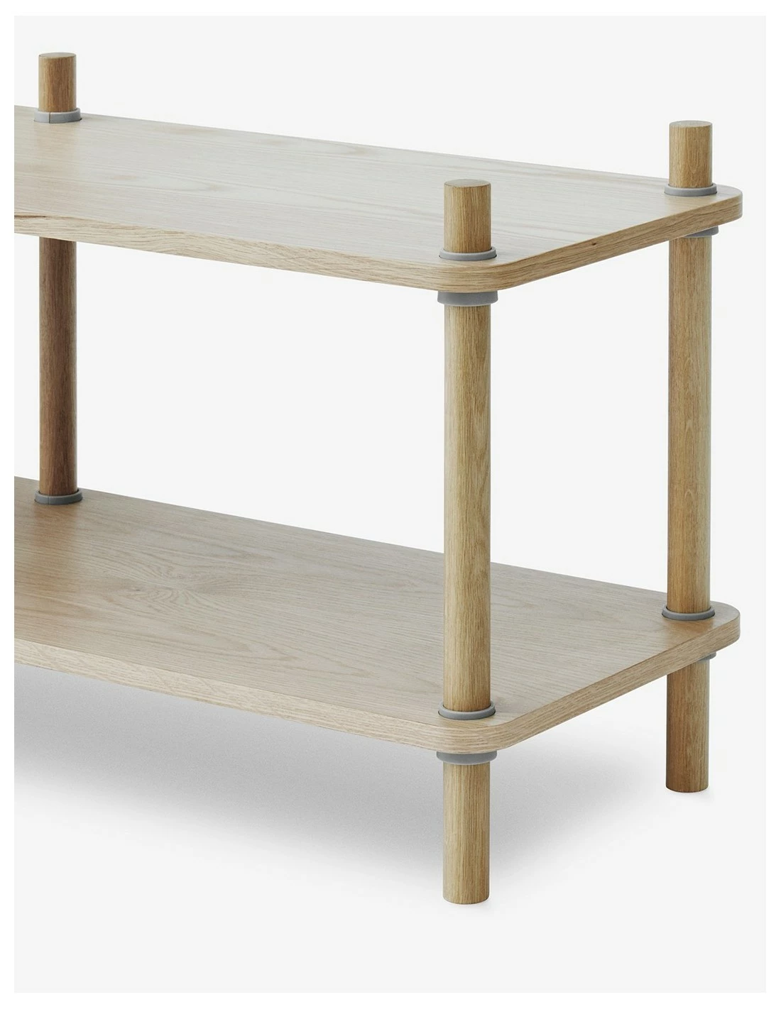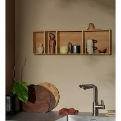 Jam es una estantería de roble de Normann Copenhagen ensamblada sin el uso de puntas o tornillos gracias a cuñas de polipropileno.