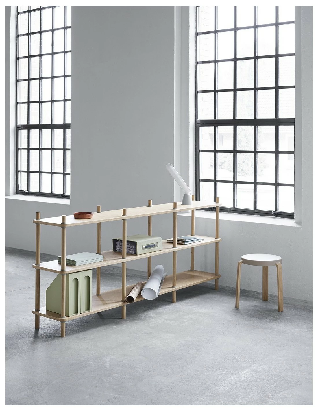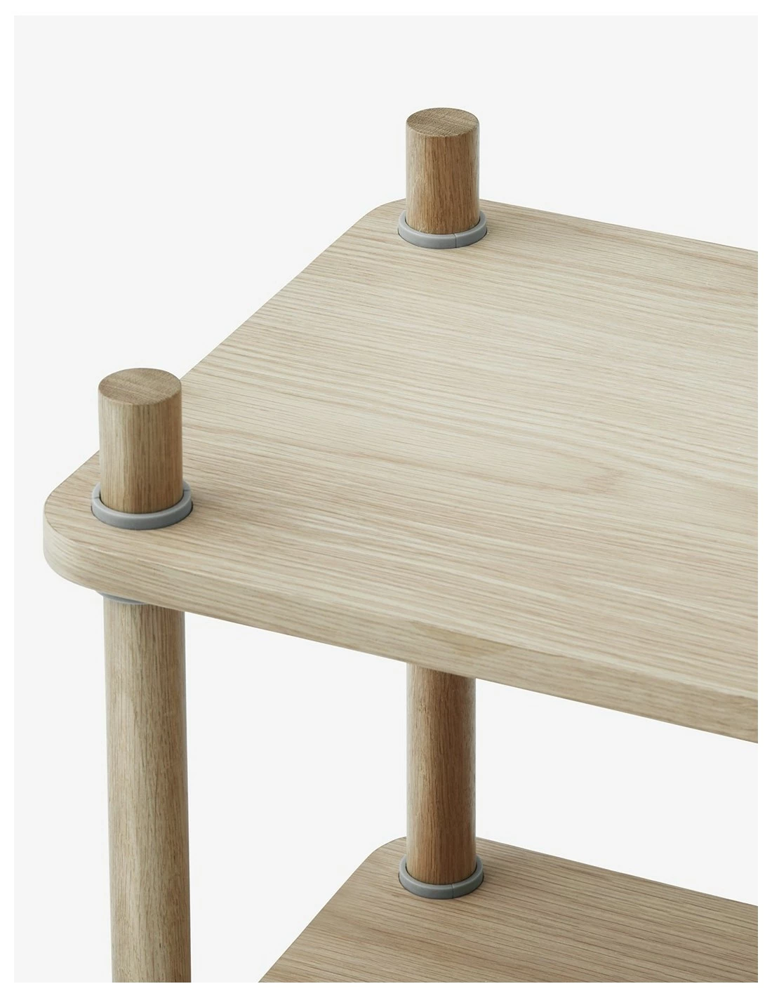 Jam es una estantería de roble de Normann Copenhagen ensamblada sin el uso de puntas o tornillos gracias a cuñas de polipropileno.