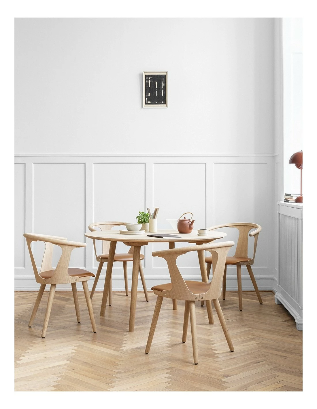 Las patas de esta mesa se realizan a partir de madera maciza de roble mientras que su tablero se realiza con un resistente núcleo de MDF terminado en roble.